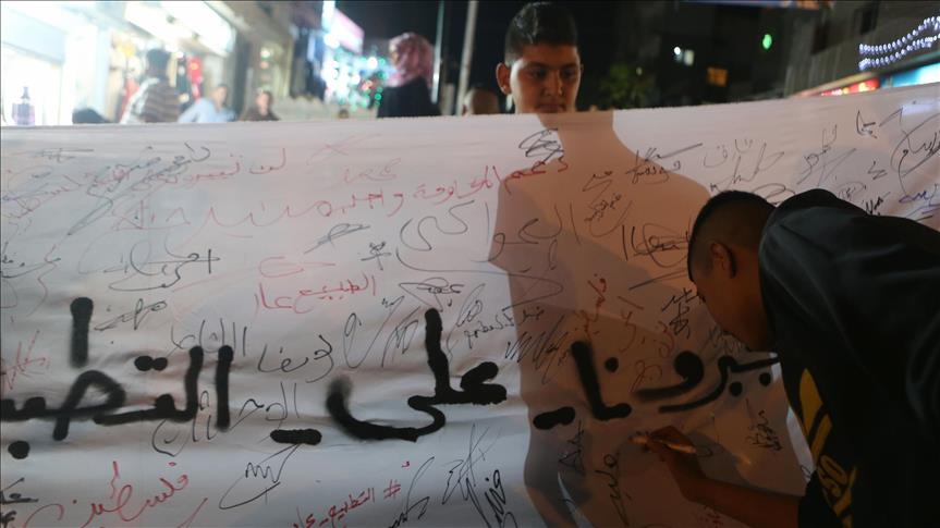 وأوضح العبسي أن المبادرة تهدف لجمع تواقيع على يافطات من مواطني الأردن في مختلف محافظات المملكة، تبدأ الساعة التاسعة والنصف بتوقيت مملكة الأردن، وتستمر لساعتين.