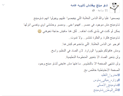 وأكدت: “سنختفي للأبد حينما تدرك الوزارة أنها لو تساهلت مع أبنائها.. واحتضنتهم واستوعبتهم.. لرأت أجيال من علماء ومهندسين وأطباء.. إن لم يأتوا الآن.. فلن يأتوا بعد ذلك.. وبكره تفتكروا كلامي”.