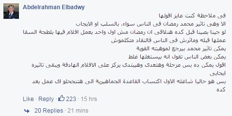 وانتقد عدد من جماهير الفنان فرحته بانتشار صورة الشخصية على تيشيرتات العيد، وعقبوا على المنشور متهمينه بأنه يضر المجتمع، ويصنع العديد من البلطجية والخارجين عن القانون.