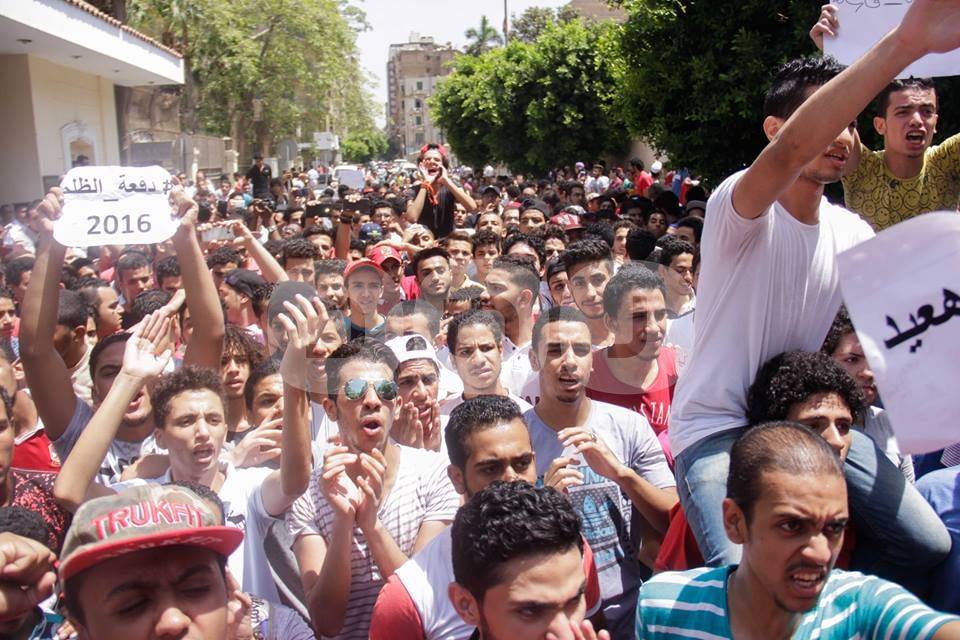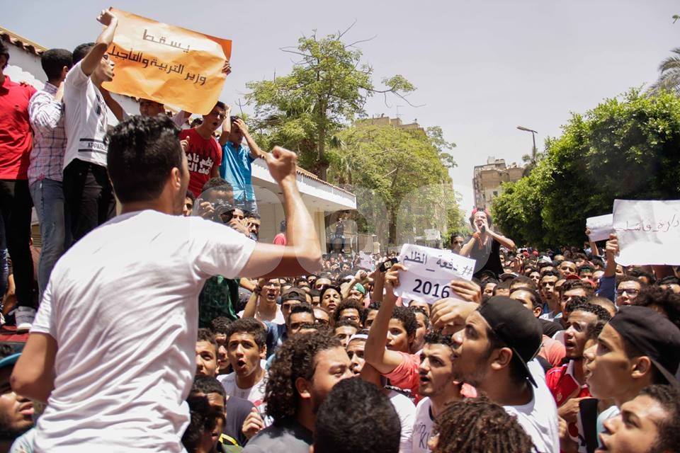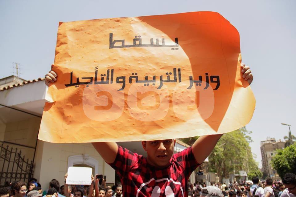 وطالب المتظاهرون بإقالة وزير التربية والتعليم ، مرددين عدة هتافات، منها: «سرب سرب الامتحان .. وإحنا هننزل الميدان»، و«ياللي ساكت ساكت ليه .. عندك واسطة ولا ايه»، و«فركش فركش في اللجان .. إحنا معانا الامتحان».