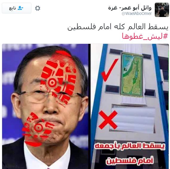 أقدمت وكالة الغوث الدولية التابعة للأمم المتحدة على تغطية خارطة فلسطين التاريخية المنصوبة على واجهة إحدى مدارس الوكالة في القطاع، وذلك خلال زيارة الأمين العام للأمم المتحدة بان كي مون، وإلقائه كلمة فيها.