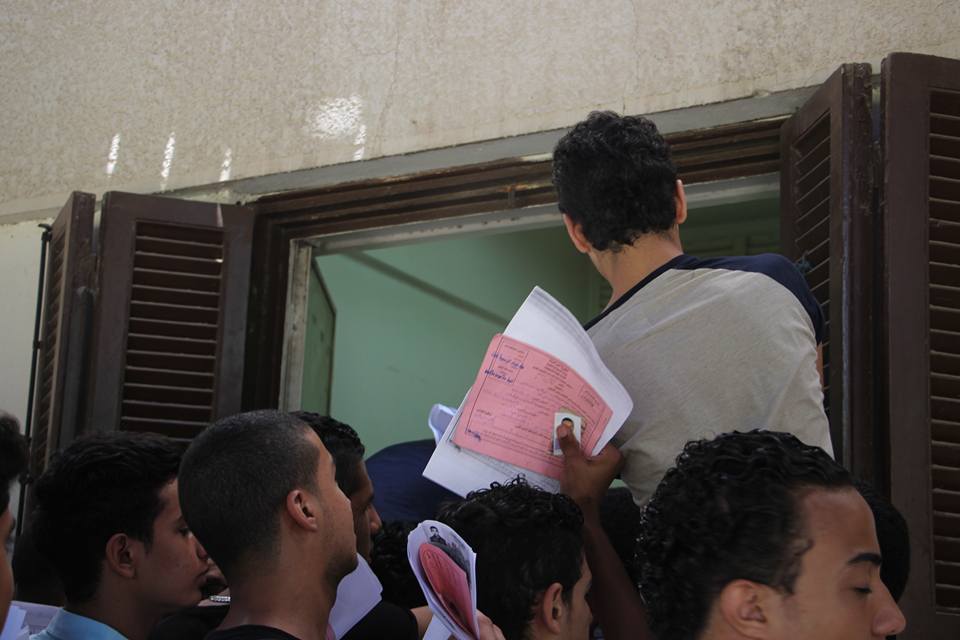 شهد مكتب تنسيق جامعة القاهرة ، اليوم الإثنين، زحامًا شديدًا من مئات الطلاب لسحب استمارات اختبارات القدرات المؤهلة للكليات التي يشترط القبول بها اجتياز هذه الاختبارات.