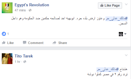 وتحت شعار “مالك عدلي حر” دشن نشطاء هاشتاج يحمل نفس الاسم، وحقق المركز الثاني بقائمة الهاشتاجات الأكثر تداولاً خلال الساعة الأخيرة.