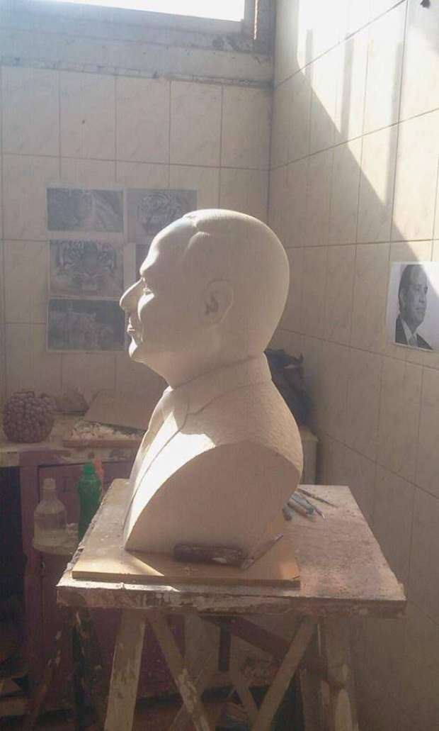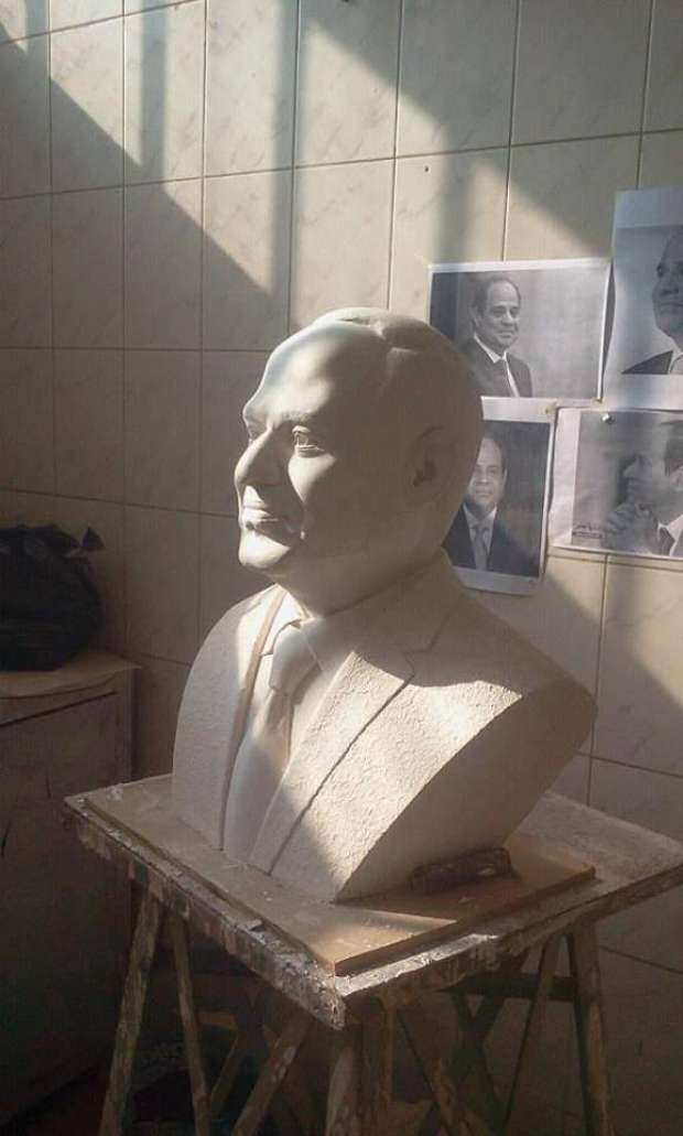 و أوضح الطالب، الحاصل على تقدير امتياز مع مرتبة الشرف في السنة الرابعة، أنه يوجد نسختين من التمثال، إحداهما معه في الأتيليه الخاص به كطالب في قسم النحت بالكلية، والآخر خاص بإدارة الكلية، وهو الذي يتم إعداده وإكماله حاليا لإهدائه إلى الرئيس.