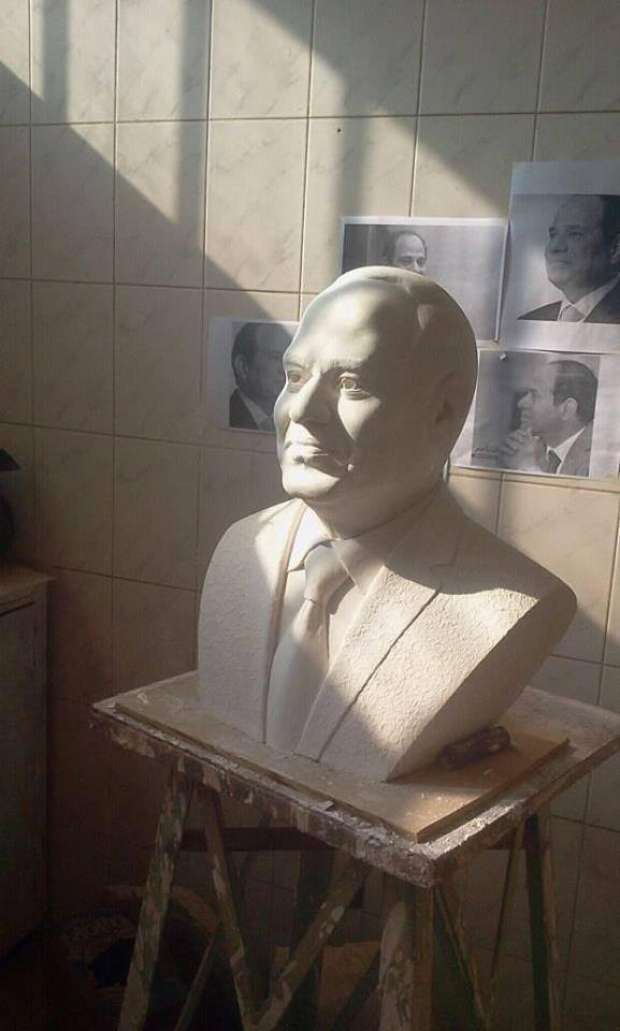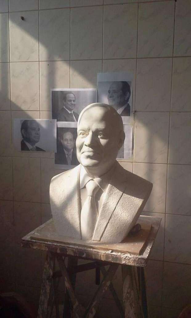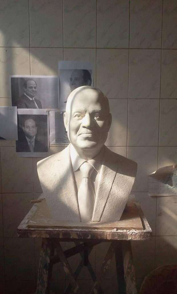 كعادة الدكتاتور في كل زمان ومكان، قام طلاب كلية الفنون الجميلة بجامعة المنيا بنحت تمثال ليخلد ذكراه، كي يضمنوا حصولهم على تقدير مرتفع بالكلية، وقد كان، حيث حصلوا بالفعل على تقدير الجامعة، فما إن نشرت صور التمثال إلا وقوبل بهجوم حاد من قبل رواد مواقع التواصل الاجتماعي.