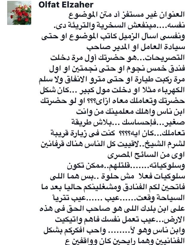 على الرغم من أن جميع آراء العاملين والخبراء داخل الخبر تشير لأهمية السائح المصري في تنشيط السياحة طوال العام، إلا أن الجريدة عمدت إلى الإساءه للسائح المصري.