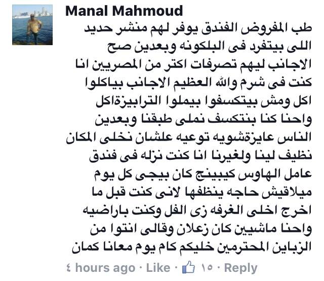 و استنكر عددد كبير من النشطاء تحقيق جريدة الوطن، مستاءين من عرض سلوكيات المصريين على أنها غير لائقة، في حين توفر الفنادق للأجانب الخمور، و حفلات الرقص، وغرف مزدوجة.