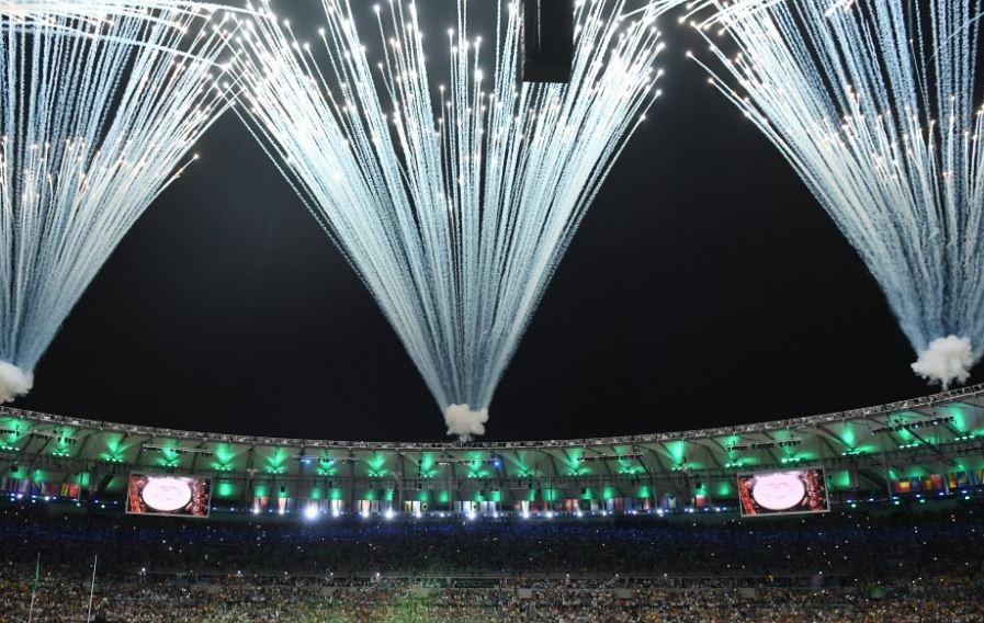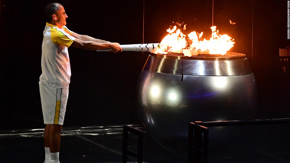 وأوقد العداء البرازيلي فاندرلي كورديرو الشعلة الأوليمبية إيذانا ببدء الدورة الأولمبية.