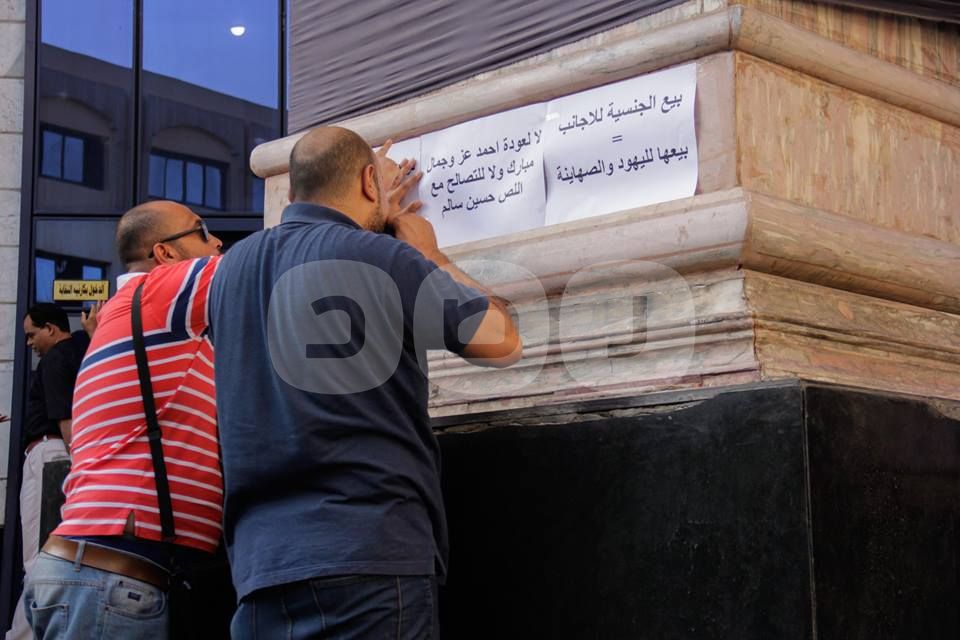 نظمت لجنة الحسيني أبوضيف للدفاع عن مهنة الصحافة وقفة إحتجاجية مساء أمس علي سلالم نقابة الصحفيين رفضا للإقتراض من صندوق النقد الدولي ،ولمشروع قانون بيع الجنسية المصرية والذي وصفه حسام السويفي، المنسق العام للجنة بأنه تميهد لإعطاء الجنسية لليهود علي حد تعبيره.