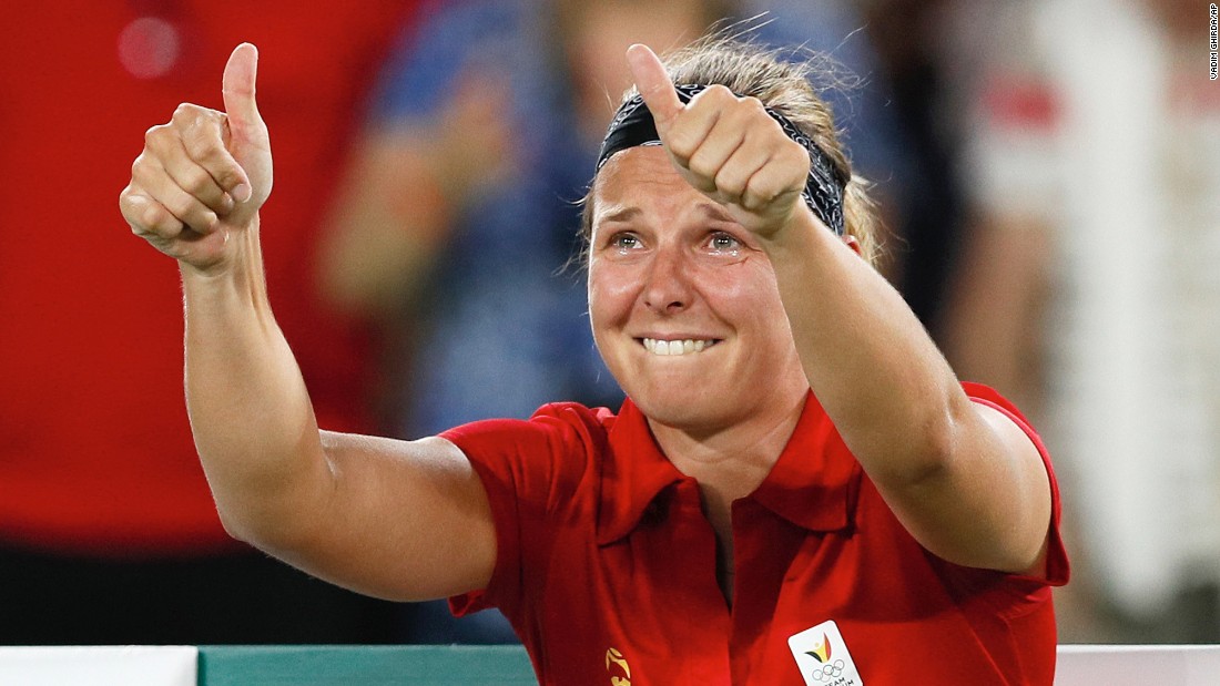 صرخات كيرستن فليبكنز من بلجيكا بعدما أطاحت بأحلام فينوس وليامز لاعبة الولايات المتحدة لتحقق أكبر مفاجأة في اليوم الافتتاحي لمنافسات التنس بنتيجة 4-6 و6-3 و7-6.