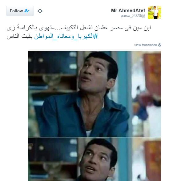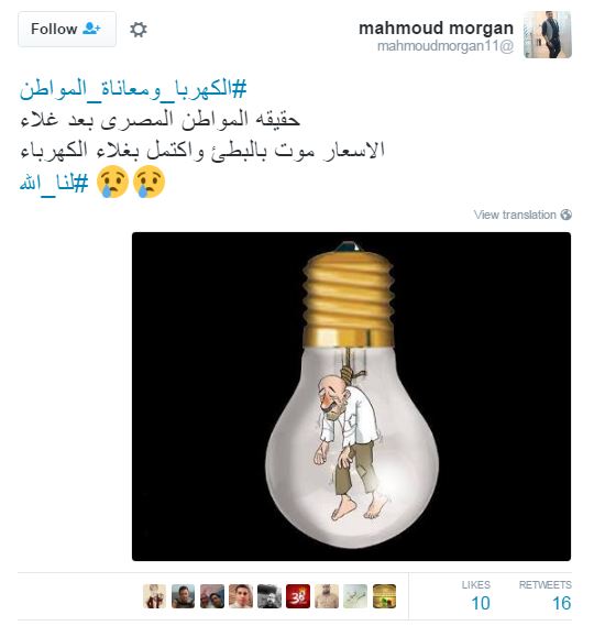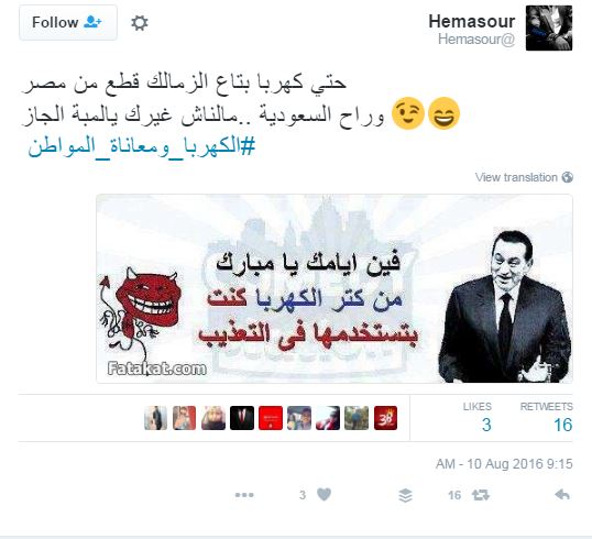 وتداول مغردون أزمة الكهرباء، عبر مواقع التواصل الاجتماعي، ودشنوا هاشتاج “#الكهربا_ومعاناة_المواطن” ، علقوا من خلاله بتغريدات غاطبة تارة وساخرة تارة، من أزمة الكهرباء وحلول الحكومة الغير رشيدة في حلول الأزمات