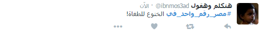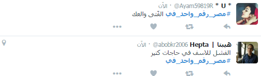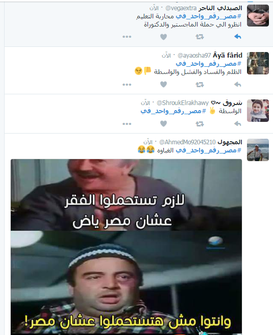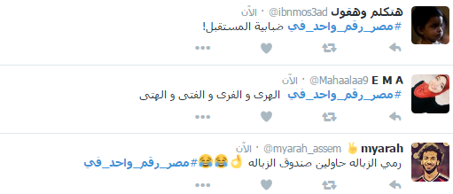 وحقق الهاشتاج المركز الأول بقائمة الهاشتاجات الأكثر تداولا على موقع “تويتر” في مصر بعد ساعتين فقط من إطلاقه.