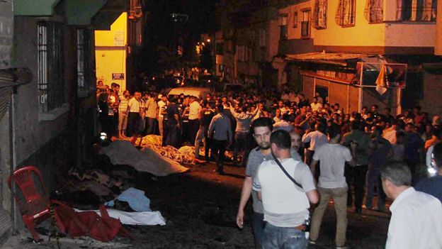 قتل 50 شخصا على الأقل وأصيب أكثر من 90 آخرين في تفجير استهدف حفل زفاف في مدينة غازي عنتاب جنوبي تركيا في الساعات المتأخرة من مساء أمس ، واتهم الرئيس التركي رجب طيب اردوغان تنظيم الدولة بالوقوف وراء الهجوم.