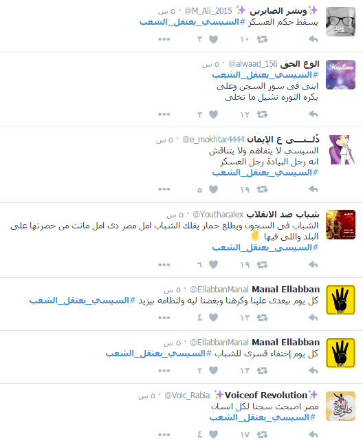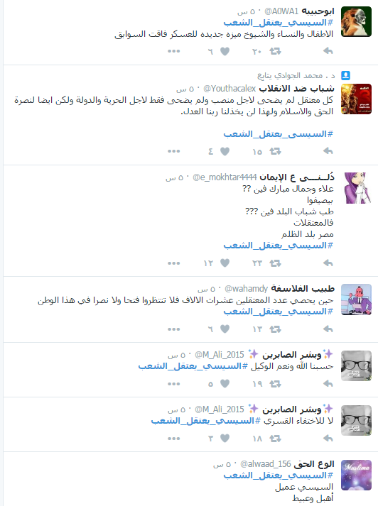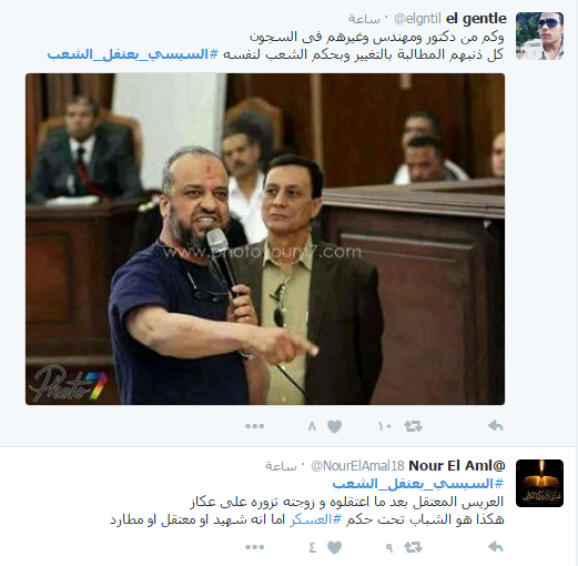 في ظل حالة الاحتقان التي يشهدها المجتمع المصري من استمرار حملات الاعتقال العشوائية التي تقوم بها الحكومة لكبح كل من يعارض عبدالفتاح السيسي خاصة فئة الشباب، أطلق نشطاء عبر موقع التواصل الاجتماعي”تويتر” هاشتاج حمل اسم ” السيسي يعتقل الشعب” .