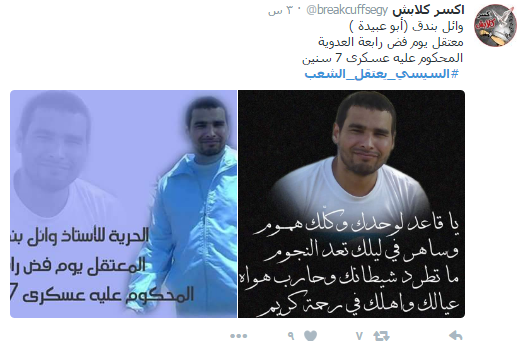 وتبادل المغردون صور المختفين قسريًا والمعتقلين بالسجون، كما شددوا على الظلم الواقع عليهم من قبل أذرع النظام الأمنية.
