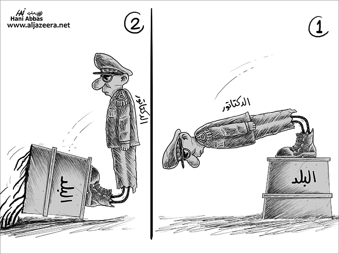 ونشرت “الجزيرة” رسماً كاريكاتيرياً، وصفت فيه الديكتاتور الذي يحكم البلاد، بأنه يمكن أن يُسقط البلاد، لكنه يأبى إسقاط نفسه.