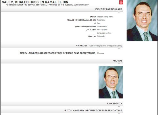 رغم صدور قرار من النائب العام المستشار نبيل أحمد صادق، بصفته رئيسًا للجنة استرداد الأموال المهربة، بمخاطبة نظرائه في سويسرا وأسبانيا وهونج كونج، لرفع اسم رجل الأعمال حسين سالم وأفراد أسرته من قائمة تجميد الأموال في الخارج ومخاطبة الإنتربول الدولي لرفعهم من النشرة الحمراء – إلا أن الإنتربول مازال يضع صور رجل الأعمال وأسرته على الموقع الرسمي للشرطة الجنائية حتى الآن.