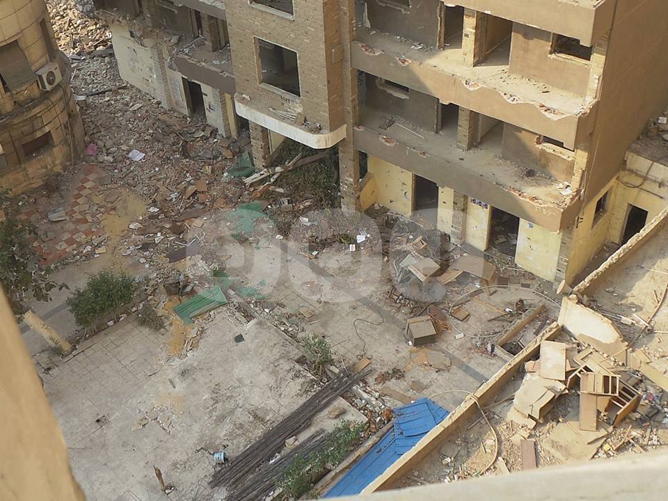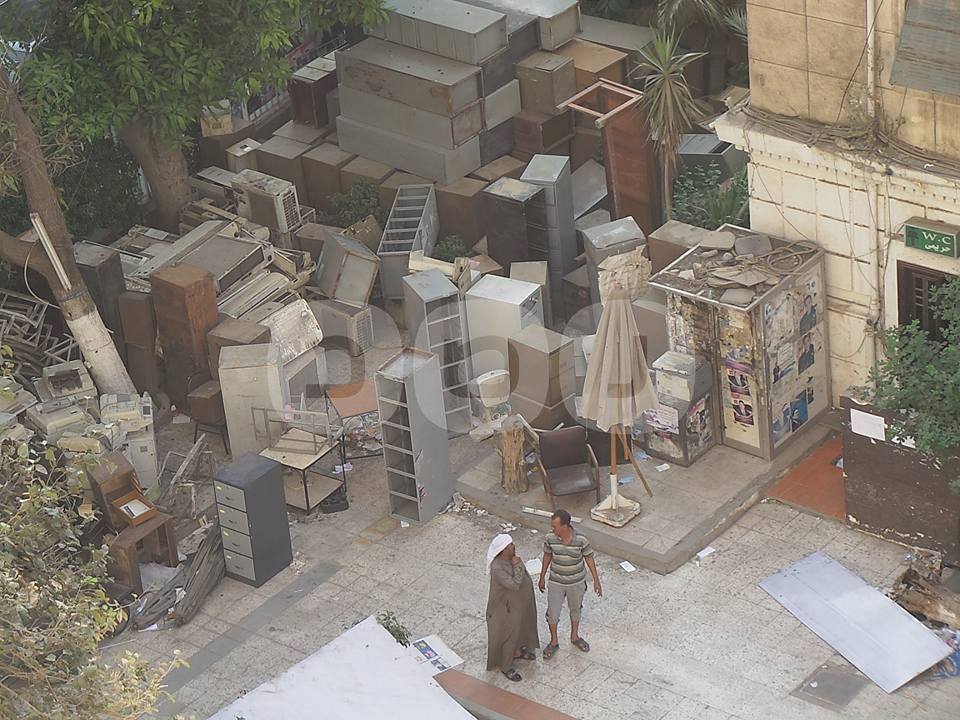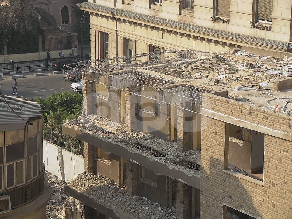 يستمر القطاع الهندسي بوزارة الإنتاج الحربي، في أعمال هدم مبنى نقابة المحامين، كما أزالت المظلات المتواجدة بحديقة النقابة، لتيسير دخول معدات الهدم.