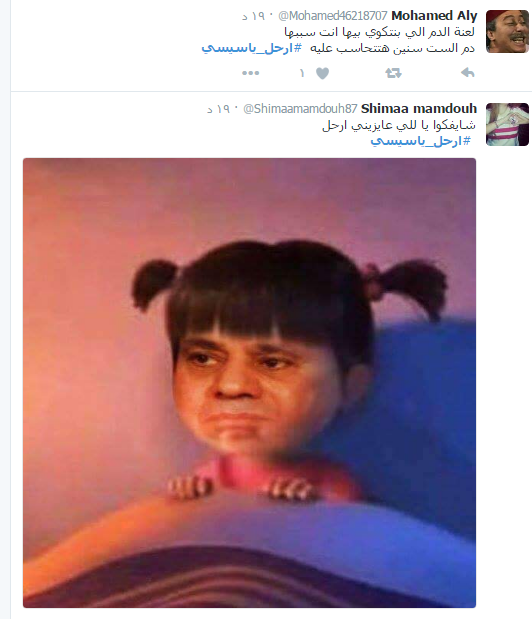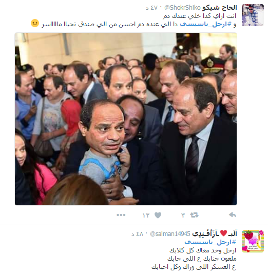 أطلق عدد من النشطاء حمله على موقع التواصل الاجتماعي “تويتر”، مساء الأربعاء، نددوا فيها بحكم عبدالفتاح السيسي من خلال نشر عدد من التغريدات والصور الساخرة.