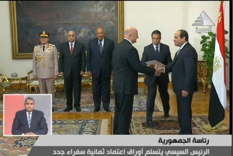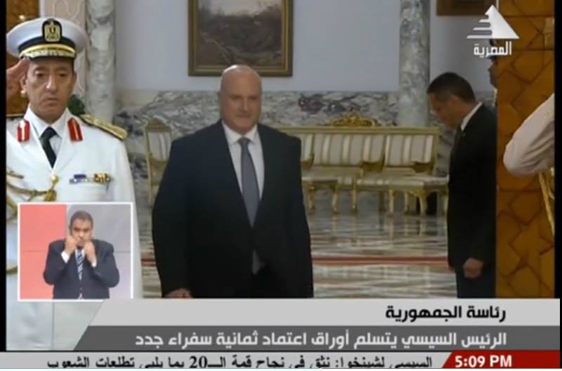 وقال أوفير جندلمان المتحدث باسم رئيس الوزراء الإسرائيلي بنيامين نتنياهو، إن “السفير الإسرائيلي الجديد قدم أوراق اعتماده إلى عبدالفتاح السيسي”.
