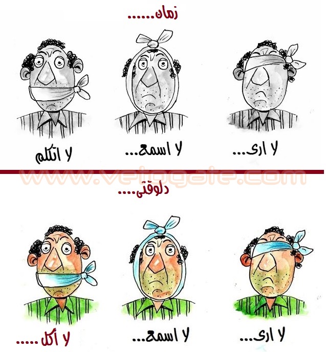 أما عن ردود الافعال من المواطنين على ما يعانيه من سياسات فاشلة من النظام، فنشرت “فيتو” كاريكاتير يصف حال المواطن بأنه لا يرى ولا يسمع ولا يتكلم كما الحال قبل الثورة.