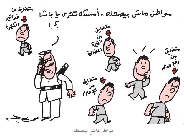 وسلطت كاريكاتيرات اليوم الضوء على أزمات متكررة في مصر، مثل الفساد المتفشي في قطاعات الدولة، وأرتفاع الأسعار ورفع الدعم،ب الإضافة لكل الخطوات والقرارات التصعيدية التي تقوم بعها الدولة من أجل زيادة العبء على كاهل المواطن المصري.
