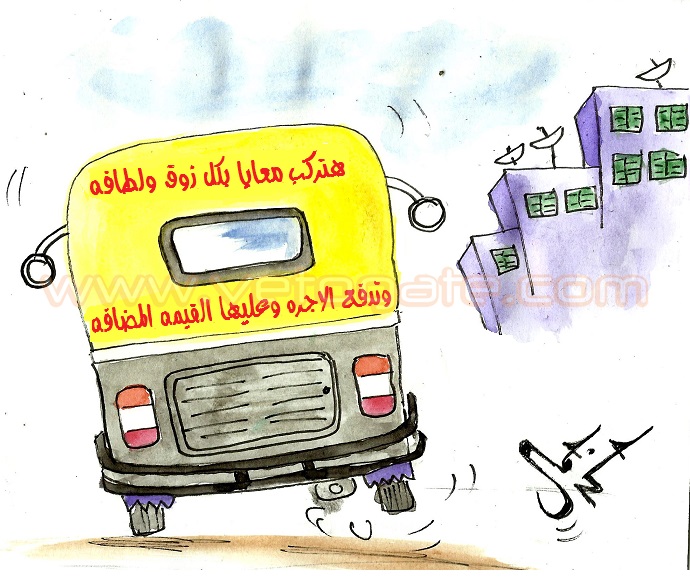 كما سخرت من فوضى تطبيق «القيمة المضافة» بكاريكاتير اليوم، وعبرت عنه باستغلالها في رفع قيمة كل الخدمات.