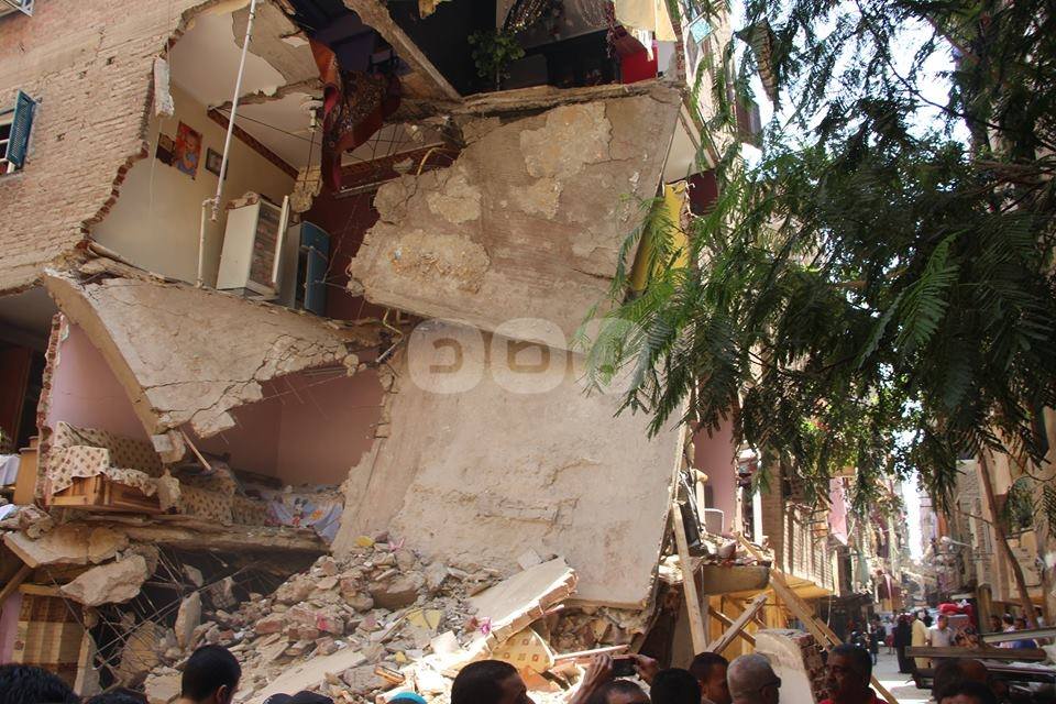 بالصور.. إصابات وضحايا في حادث إنهيار عقار بالدرب الأحمر