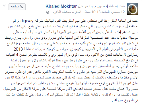 – نشر صاحب الفكرة الاصلية ، خالد مختار ، منشورا علي صفحته الشخصية ، يؤكد سرقة فكرة الفيلم وحواره كاملا .