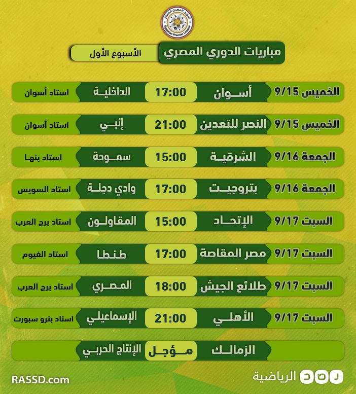 8 مباريات من المقرر إجراؤها في الأسبوع الأول، مع تأجيل مباراة، نعرض تفاصيله لكم في الصورة التالية: