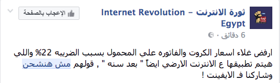 وطالبت الحملة، وفق بيانها على موقع “فيسبوك”، بـ”إقالة جهاز تنظيم الاتصالات وتعيين رئيس جديد للجهاز ووزير من الشباب، وإلغاء الضريبة من على المستخدم، على أن تتحملها الشركات بالكامل، وتخفيض أسعار الإنترنت لتتناسب مع دخل المواطن المصري وإلغاء الاحتكار وفتح السوق لمنافسة حرة”.