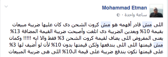 يقول أحمد علي: صاحب أحد الأكشاك بمنطقة الدقي ، إنه يبيع كروت الشحن حالياً بسعر القيمة المضافة الجديدة التي تم الإعلان عنها، لافتاً إلى أن الكارت بقيمة 10 جنيهات أصبح يباع بمبلغ 12 جنيه بدءاً من الأسبوع الماضي، وفقاً للأسعار التي يبيع بها تجار الكروت.