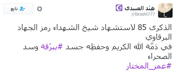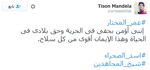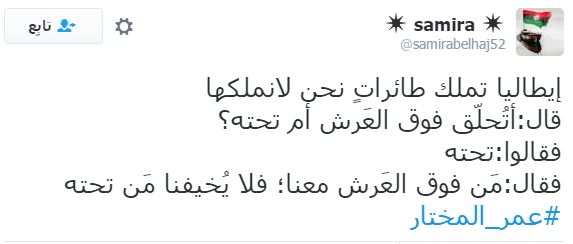شهدت صحراء ليبيا المعارك التي خاضها عمر المختار وسطر عليها بدماء الشهداء أروع آيات العزة والجهاد، وكبد المجاهدون المحتلين خسائر لا تحصى في الأرواح والعتاد، وثبتوا أمام عدوهم مع أنهم لا يمتلكون سلاحًا كما يملك عدوهم من السلاح، لم يتسنى لأسد الصحراء أن يتخرج من كلية حربية أوعسكرية، ولم يتلق مهارته الحربية من جيش، إنما تربى عمر المختار في ساحات المعارك والجهاد، فحارب عمر المختار الطائرة بسيفه حتى امتلك الخوف قلوبهم بمجرد سماع اسم عمر المختار.