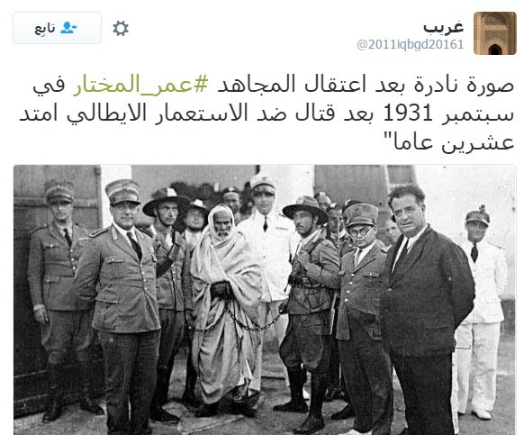 في عام 1931م، تمكنت القوات الإيطالية من خلال وحداتها الاستطلاعية، من القبض على عمر المختار، أثناء توجَّهه بصحبة عدد صغير من رفاقه، لزيارة ضريح الصحابي رويفع بن ثابت بمدينة البيضاء، ولم يصدق جراتسياني الذي كان متوجهًا إلى باريس الخبر في البداية، وقرر أن ينزل من قطاره ليعود مسرعًا إلى بنغازي.