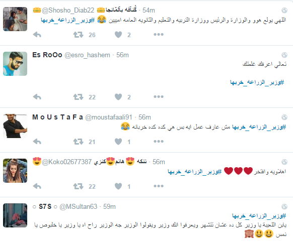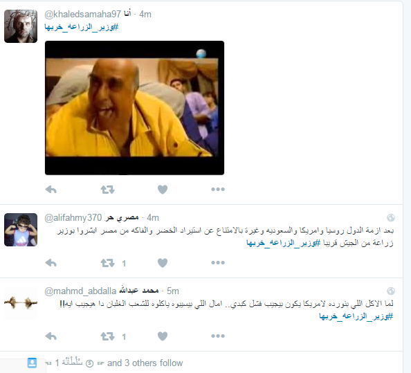 دشن مغردو موقع التدوين العالمي “تويتر” هاشتاج “وزير الزراعة خربها”، بسبب حدوث أزمات جديدة بالوزارة تحت قيادة الدكتور عصام فايد، هذه الفترة، والتي كان آخرها شحنة القمح الفاسدة.