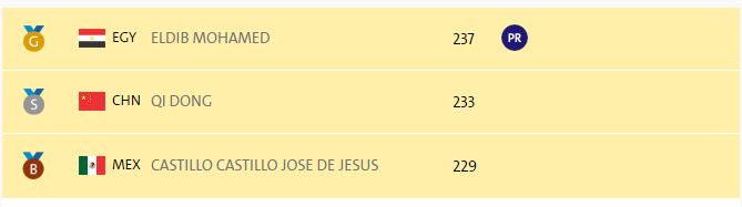 كما فاز الرباع المصري محمد الديب، البالغ من العمر 37 عامًا، بالميدالية الذهبية في منافسات رفع الأثقال، وزن 97 كجم رجال بـ “ريو”، وجاء محمد في المركز الأول بعد رفعه لوزن 337 كجم، يليه اللاعب الصيني في المركز الثاني لوزن 233 كجم، متفوقًا على 11 منافسًا له.