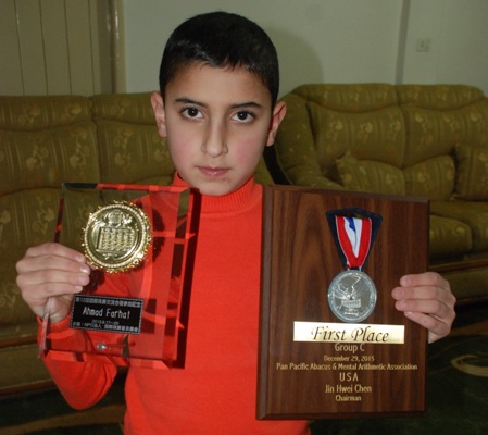 وكان هادي حمزة، المدير العام للمركز الذي يتعلم فيه الطفل العبقري أحمد، قد راهن على قدرات الطفل غير العادية قائلاً له :”بك سنتحدى اليابانيين والعالم”، مستنداً إلى نتائج الاختبارات التي أجراها للطفل وهو لا يزال في عمر الثامنة.