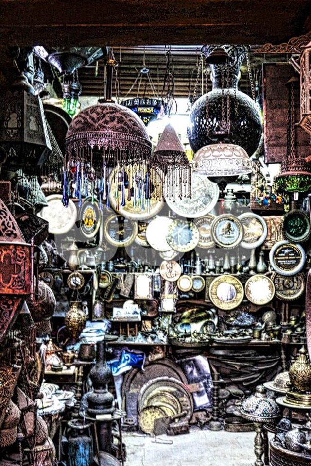 إلى هنا، فأنت في قلب درب النحاسين، حيث تسمع أصوات الطًرق على النحاس والأواني، تطرب أذنك، وبلمعانها تبرق عينك، وتسلب عقلك دقة صنيعها.