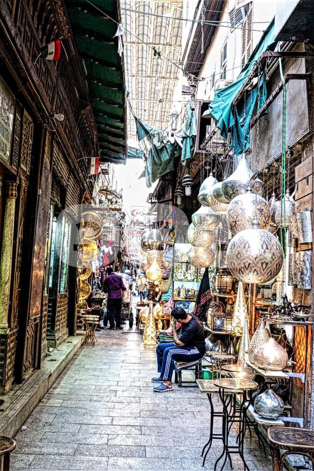 هذا الشارع العتيق، الذي يعود تاريخه إلى العام 969 ليس زاخراً فقط بالأثار والمعالم، على جانبي الشارع تجد الكثير من المهن، منهم من يبيع الأنتيكات للسائحين، ومنهم من ينشد التواشيح الدينية أو من يرتزق بنثره للبخور فى دكاكينش الشارع.