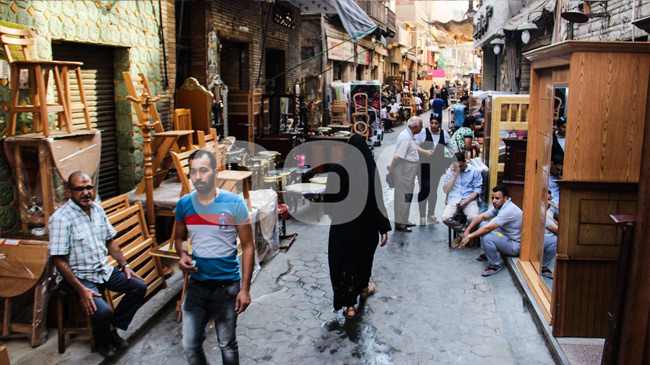 بالقرب من باب الخلق، شوارع ضيقة تكتظ بالأثاث، يقصدها كل مقبل على الزواج، فالأثاث أو ” العفش” باللهجة الدارجة في مصر، الجزء الأكبر من بنود الإنفاق في الأعراس، بل أول ما يتم الاتفاق عليه بين أهل العروسين.