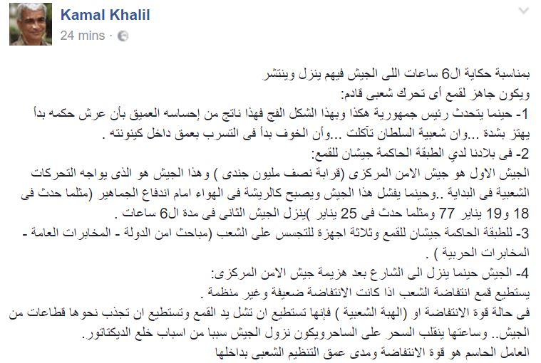 – وجاء تعليق الناشط اليساري كمال خليل كالتالي: