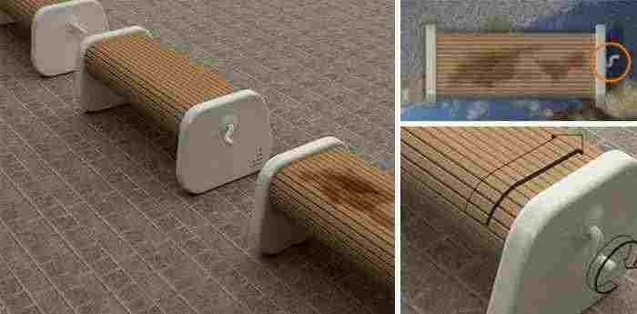 صممت هذه الكراسي بحيث يستطيع الجالس دورانها ما إذا أصابها البلل من المطر.