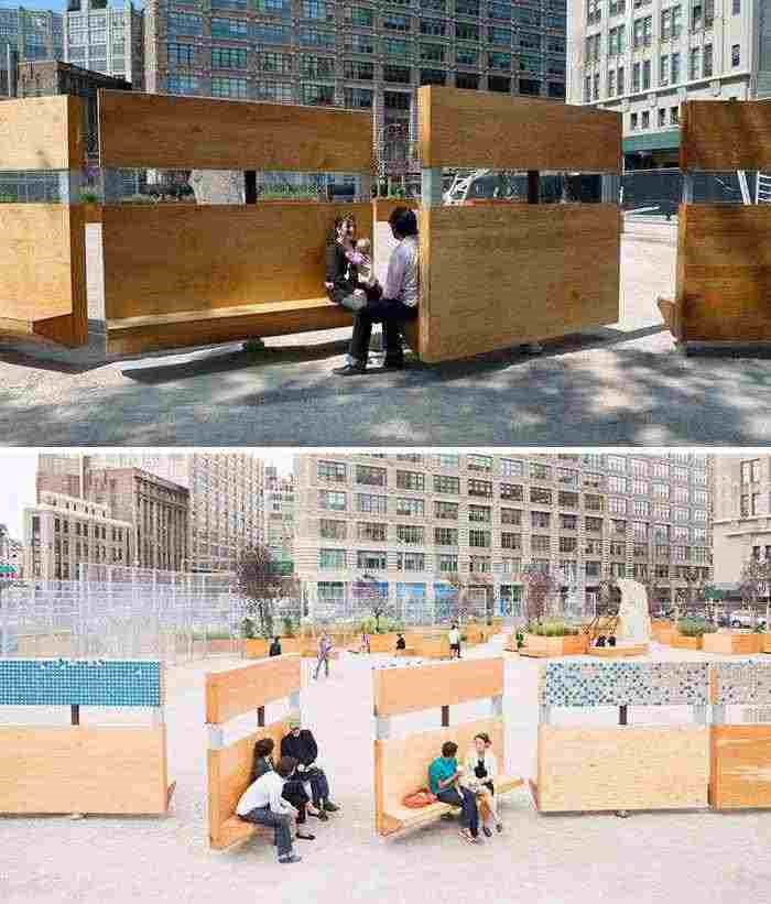 وضعت هذه المقاعدة العامة في نيويورك، بتصميم كبير، ويستطيع المقعد المنفرد الدوران بحيث يكون في مقابلة المقعد الاخر أو في خلفيته.