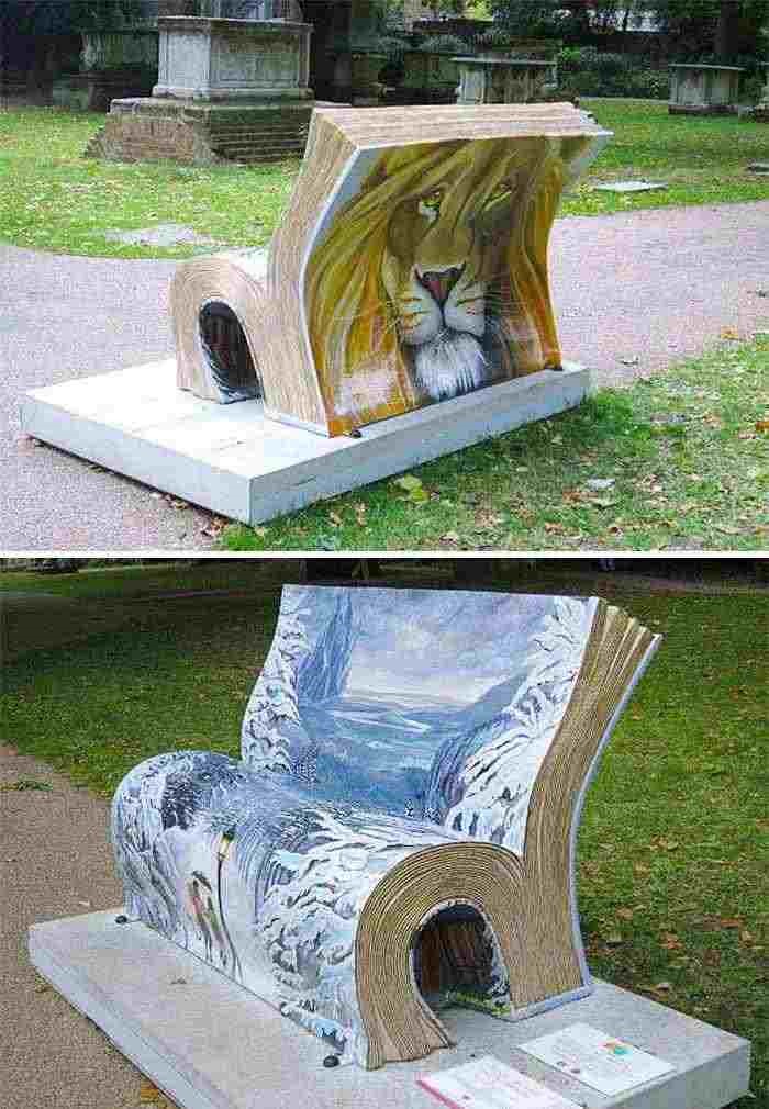 عندما تجلس على هذا الكرسي تصبح جزءا من لوحة مرسومة عليه كصفحات القصص.