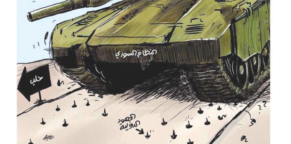 وسلطت “الشرق الاوسط” الضوء على دهس النظام السوري لكل الجهود الدولية لوقف إطلاق النار في حلب، وتهدئة الأوضاع من خلال كاريكاتير اليوم.