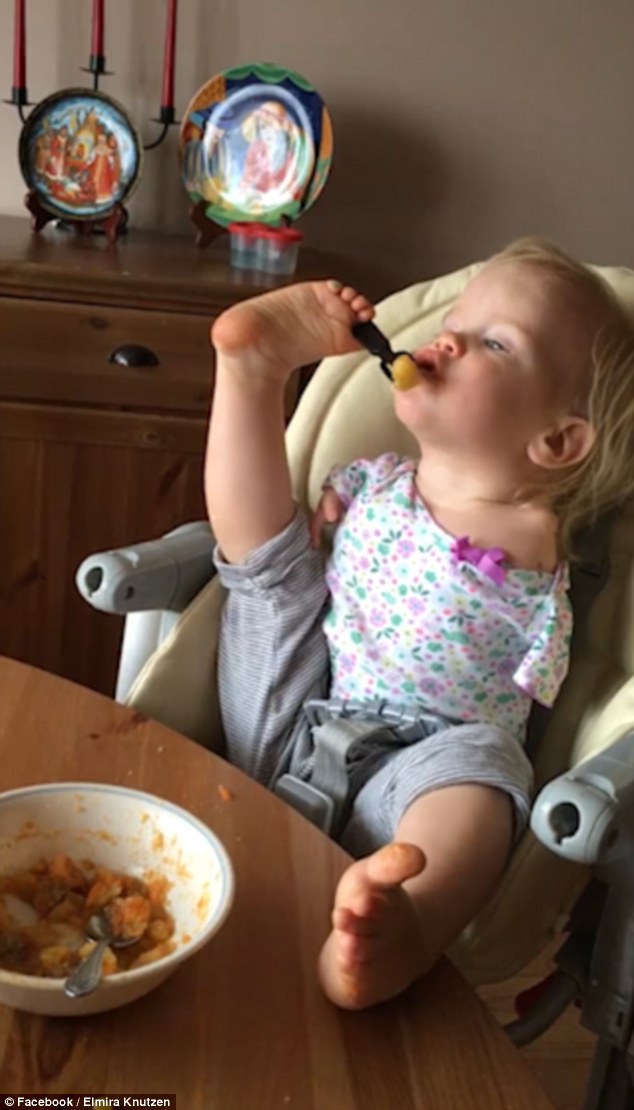 تنتظر الأمهات اللحطة التي يعتمد فيها أطفالهن على أنفسهم في الطعام، وتكون أسعد تلك اللحظات عندما يمسك الطفل لأول مرة بملعقته ليطعم نفسه، لكن الأمر عند الطفلة “فازلينا” كان مختلف كليةً، فأول استقبال لطعام منها لفمها كان بقديميها.