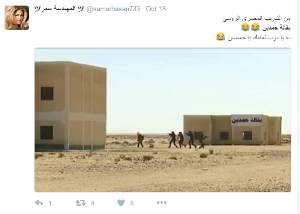 تداول رواد مواقع التواصل الاجتماعي ، صورة للتدريبات المشتركة بين مصر وروسيا في محافظة مرسي مطروح، حيث وضع الجيش لافتة علي أحد المجسمات تحمل اسم “بقالة حمدين” .