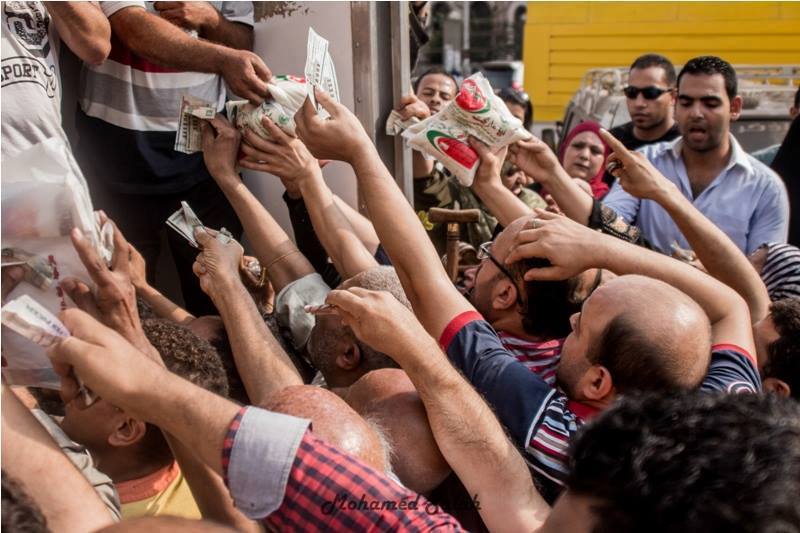 منذ أن أطاح عبد الفتاح السيسي بالرئيس المنتخب محمد مرسي، في يوليو 2013، وبات مشهد طوابير المواطنين متكررًا، ومعتادًا بشكل مبالغ فيه،لاسيما وأن الأزمات تتفاقم وتلاحق المصريين يوما تلو الأخر، فأصبح المواطن الفقير يقضي يومه متنقلاً من طابور لآخر، بهدف الحصول على السلع الأساسية للمعيشة، لما لا والحكومة تترصد بحقوق محدودي الدخل.