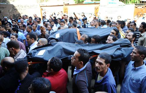 وأغلقت الأعداد الكبيرة لسيارت الموتى شارع بيرم التونسي المؤدى إلى المشرحة، فيما طغت رائحة الدم على المكان، بعد اكتفاء ثلاجات المشرحة من الجثث، واضطرار أهالي المتوفين، وضع الثلج على جثث ذويهم خارج المشرحة.
