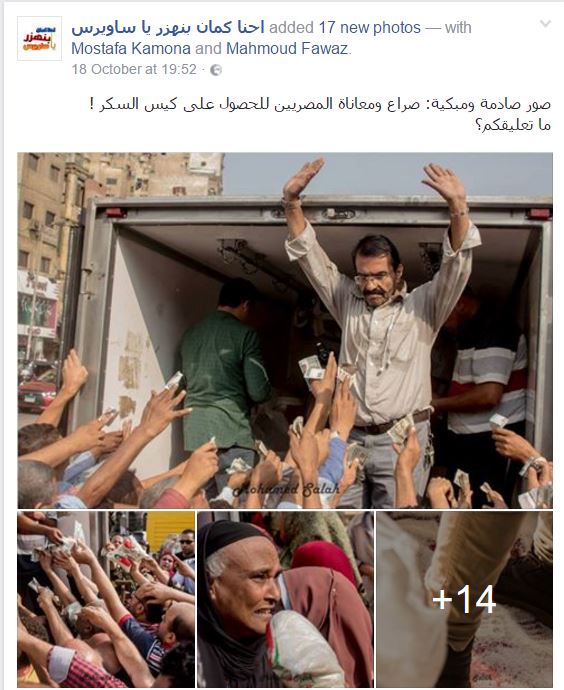 وتداول رواد مواقع التواصل الاجتماعي صوراً لمواطنين يزدحمون أمام عربات السلع التموينية، في موقف مهين، للحصول على “كيس” سكر، واتهموا الجيش بأنه وراء افتعال الأزمة،.